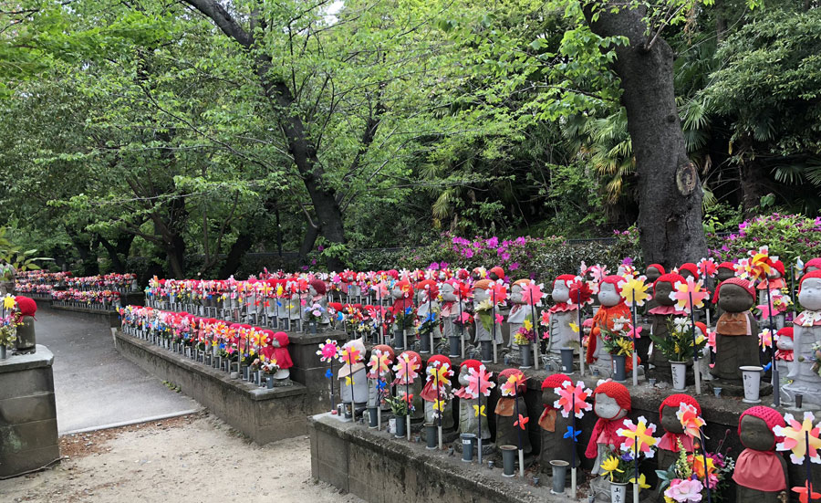 またたくさんのお地蔵さんとお供えされた風車が回る風景が非常に印象的です。