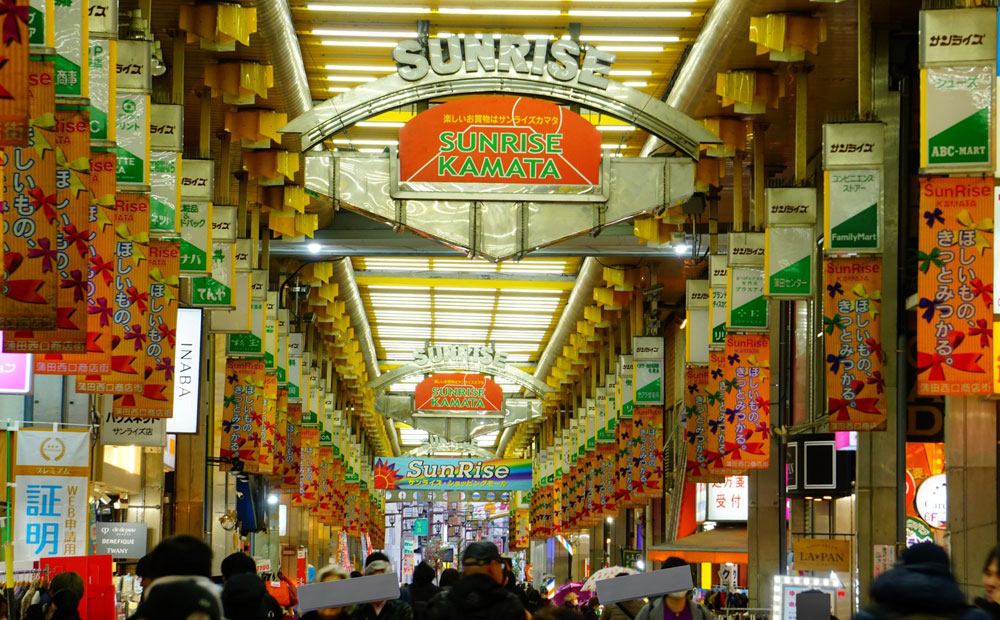 特に西口側には「サンライズ蒲田」「サンロード蒲田」と呼ばれる大規模な商店街が駅前から伸びており、