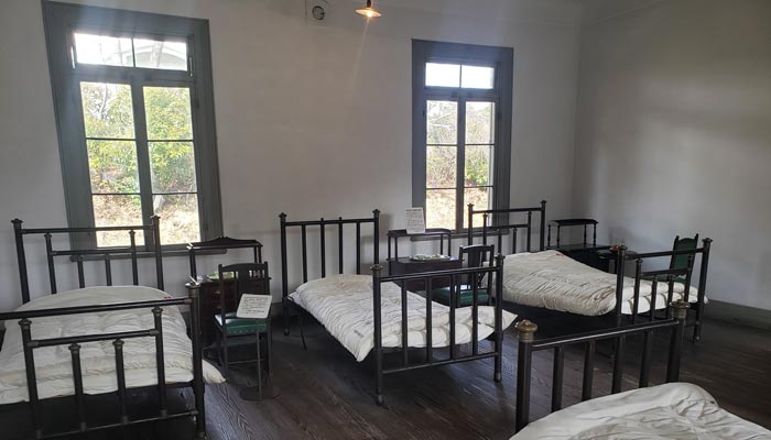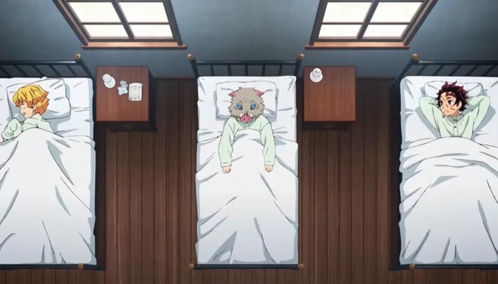 ついでに同じ場所にアニメ第23話で炭治郎たちが蝶屋敷で寝ているシーンの場面があると話題です。善逸、炭治郎、伊之助が寝てたベッドです。こちらも行った際には必見です。