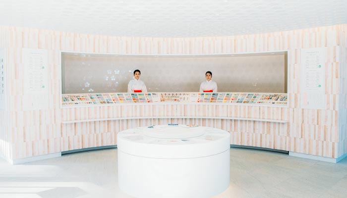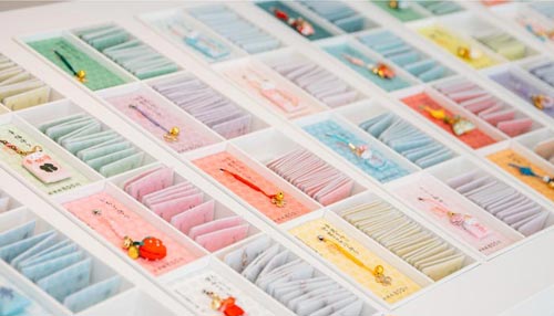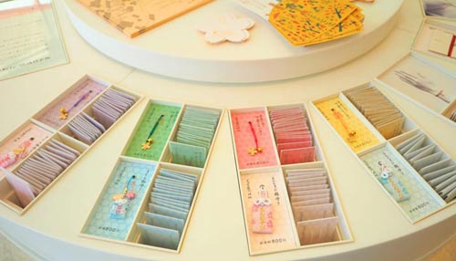 また境内にある「お札お守りの授与所」はとても優しい色合いの現代的なデザインで、世界的なインテリアデザイナーの片山正通さんが設計しています。「宝満宮竈門神社」は、縁結びの神様としても有名で、様々な種類の縁結びのお守りがあります。