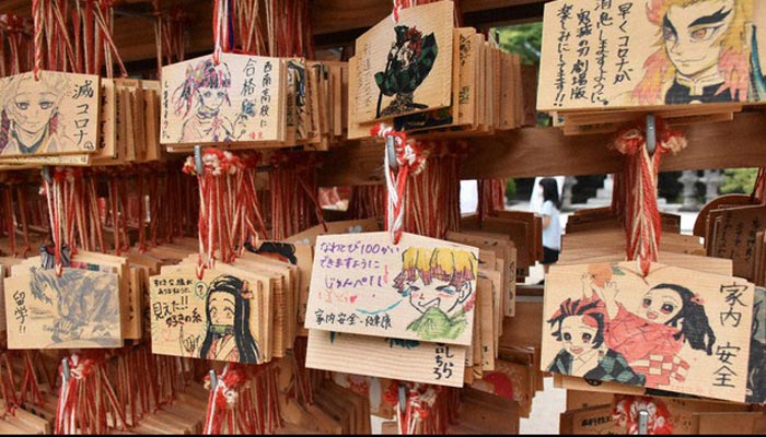 今では「鬼滅の刃」の聖地としてたくさんのファンが訪れています。絵馬にもそれが現れています。老若男女に人気のある漫画の影響と言えます。