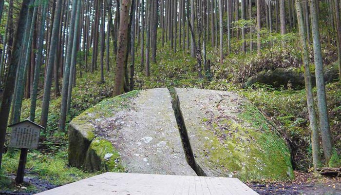 先程も書いた通り、この神社には「鬼滅の刃」のモデルになった「一刀石」があります。御神体である巨石群の一番奥に「一刀石」があります。長さ8m、幅7m、高さ2mの巨大な岩が、林の中に横たわっており見事に真っ二つに割れています。これが炭治郎が真っ二つに切った石にそっくりです。