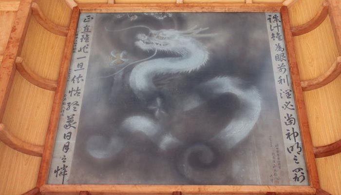 最終的に神様は鬼が九十九段の石段を造ったことを評価し、龍神(拝殿天井画)を使いに出し、鬼を改心させ、今では「かまど地獄」の門番として真面目に働いているとのこと。龍神が「かまど地獄」にいるのは、再び悪事を起こさないよう見張っているためです。