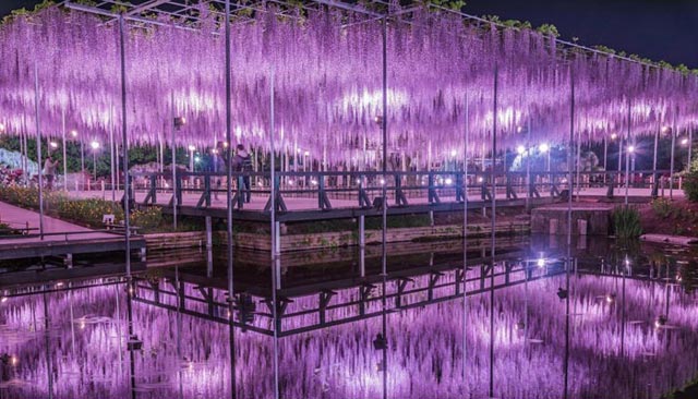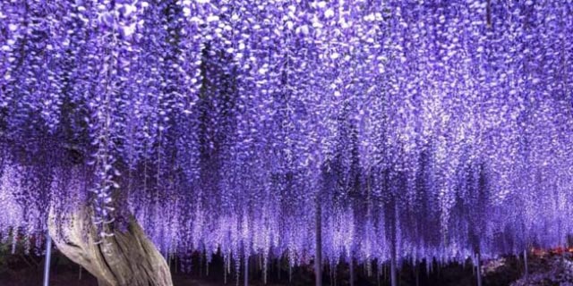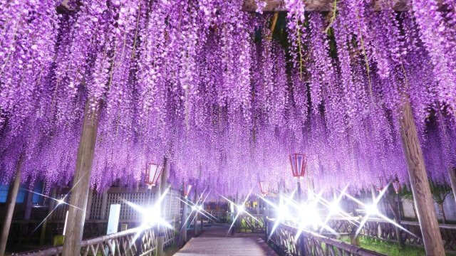 栃木県にも“聖地”として注目されるスポットがあります。作中で鬼が嫌うとされるフジの花が咲き誇る「あしかがフラワーパーク」です。