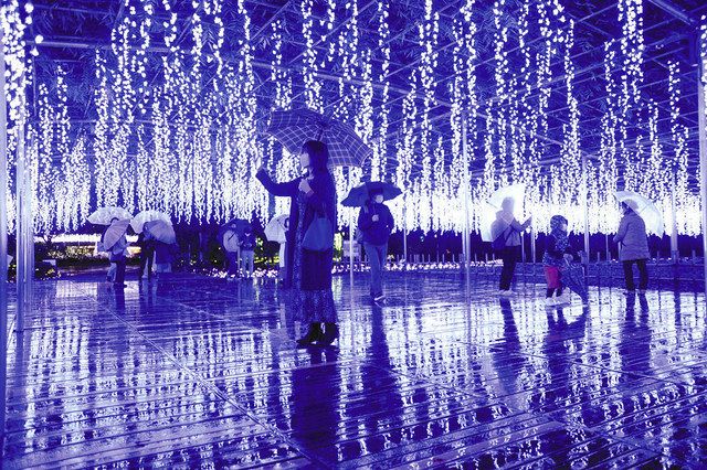 作中、炭治郎が暗闇に浮かぶフジの花の間を通る姿が描かれています。同パークで実施している大フジのイルミネーションがそっくりだと評判。ファンは大フジを見て「最終選別とそっくり。すごく楽しい」と人気です。