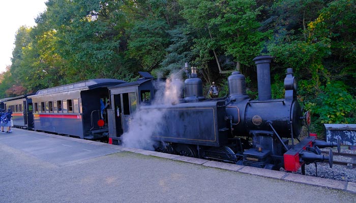 明治村は蒸気機関車と路面電車の保存を行っており、そのなかでも「9号機関車」は動的保存を行っています。明治製の貴重な機関車が、今でもちゃんと動きます。動く状態で明治時代の蒸気機関車が保存されているのは凄い事ですね。