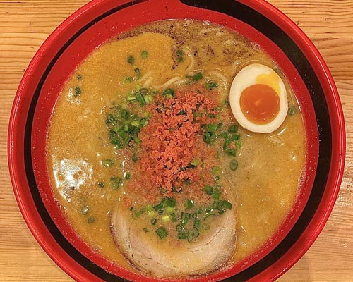 ガツンとした豚骨ベースながら、重すぎる印象はなく、細麺とのバランスが絶妙。