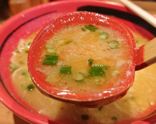 スープは甘エビの旨みと風味がしっかりと広がる、濃厚な甲殻類系味噌。