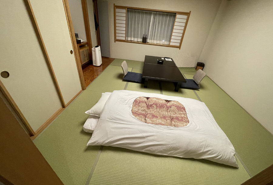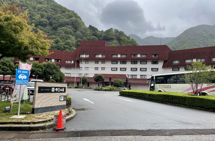 車で入っていくと旅館の人が「遠いところお疲れ様でした」と迎えてくれました。
