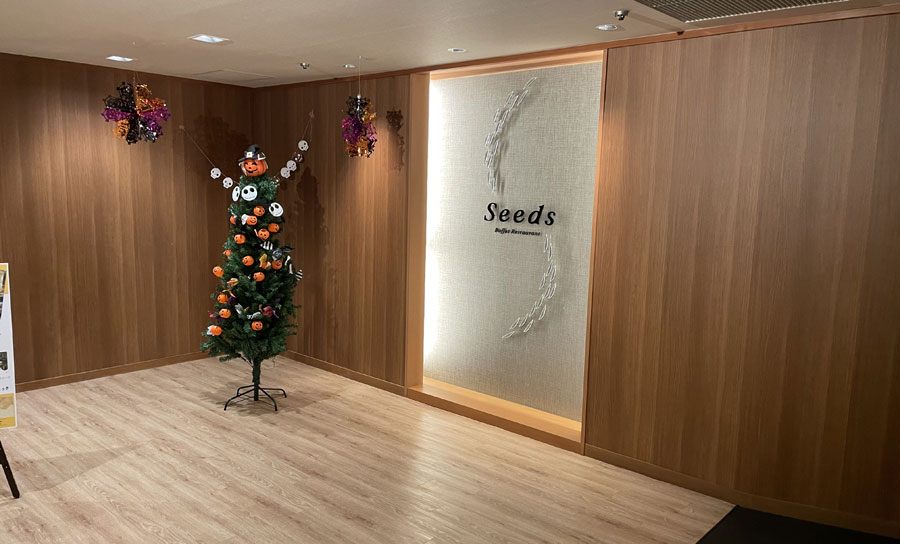 10月だったのでツリーにかぼちゃが飾ってあありました。ハロウィン仕様です。