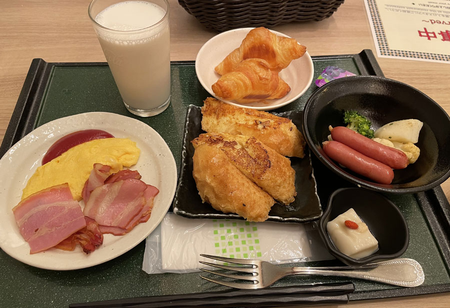 パンやご飯などいろんな種類の朝食が用意されていました。