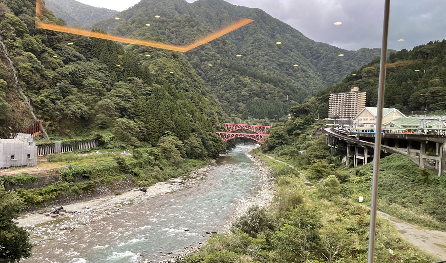 橋はダブルでかかっていて川側の部屋を取れれば部屋からも楽しめす。