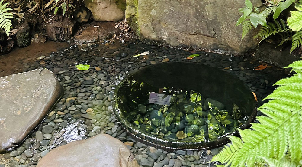 森を抜け小径を下ると南池に出ます。さらに進むとお目当ての清正井(きよまさのいど)に到着です。