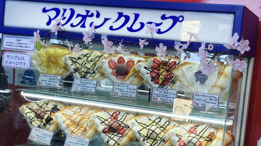 マリオンクレープの実店舗や、エンジェルスハートなど老舗クレープ店が竹下通り入口付近にあります。